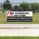 An outdoor black white and red sign banner that can be customized. You can use it for warnings like: No Standing Anytime / in front of gate, No Standing Anytime / in front of garage etc. Just add your text.