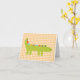Looking for cute custom note cards? These folded note cards feature a colourful green alligator set against an orange gingham background. Blank on the inside to send a chic and charming message.