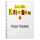 A custom notebook with retro letters reading "From the Kitchen of" with scripty and cute black letters against colour blocks of red, orange and yellow. Customize it to change fonts, background colours and more and save your design for later.