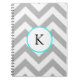 Show your personality with this fun and trendy chevron stripe spiral notebook. Personalize it with your monogram or name framed in a turquoise circle. Perfect for a journal, taking notes, work, school and home. Makes a great gift for all occasions. Click the "Customize it!" button to change the text size, text colour & font style.