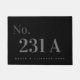 Custom Number Address Typography Grey Black Doormat. Stylish Charcoal Grey and Black design with customizable text.