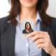 Add elegance and personality to your employee badges with this off-white faux leather photo ID featuring a soft textured look and removable brown stitched frame. With casual yet professional typography, it’s a perfect match for creative, hospitality, or beauty businesses.