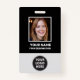 Easily personalize this Black and White Custom Employee Name Badge Template with Photo, Scan Bar Code, and your own business logo. A simple business design in standard colours fully customizable in front and back