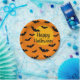 Custom orange and black bats Halloween party paper plates. Add your own personalized happy holiday greeting. Spooky party supplies, decorations and disposable throwaway accessories for fun costume party, trick or treat, night gathering, bbq, dinner, Birthday, wedding etc. Available in small and large. Change the quantity to get the cheap bulk price. Suitable for men, women and kids. Full moon with elegant text template.