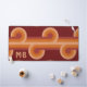 Contemporary bright orange, dark yellow, and maroon red coloured geometric circles and lines pattern on a dark burgundy red background. With the option to customize or personalize with a name monogram, or initials of your choice. Ornate, elegant, stylish, and eclectic design for the fancy artistic fashionista, the artsy fashion diva, popular hip trendsetter, vintage retro art style, and abstract digital geometric motif lover.