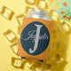 Custom orange greay blue Monogram Elegant Can Cooler