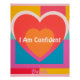 This is a red, pink and orange heart affirmation poster. The design was created with artificial intelligence art. The artwork features a white, pink, red and orange heart in the centre. There are geometric abstract art shapes in the backgroun. The affirmation is I Am Confident. The affirmation is in the centre in white text. You can change the affirmation by clicking the Personalize button. The name Brenda is at the bottom of the poster in pink script. You can also change the name Brenda to another name by clicking the Personalize button.
