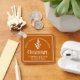 This custom orange veterinary graduation keychain features white typography for a class of 2024 graduate. Customize with your graduating year under the medical caduceus for a great personalized veterinarian gift.
