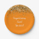 Custom Orange White Gold Graduation Party Glitter Paper Plate