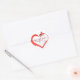 Beautiful custom wedding seal begins with a unique red heart outline. Half of the heart looks like a watercolor and the second half ends with a formal flourish. The heart outline begins as a bright medium red and ends as deep burgundy red in the flourish. The bride and groom's new common initial is in grey in the centre. The bride and groom first names and wedding date is over the large initial in a pretty red fancy font.
