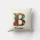 Custom Ornate Monogram B Christmas Ivory Throw Pillow