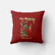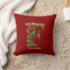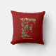 Custom Ornate Monogram F Christmas Red Gold Throw Pillow
