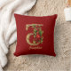Custom Ornate Monogram J Christmas Red Gold Throw Pillow