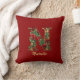 Custom Ornate Monogram N Christmas Red Gold Throw Pillow