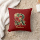 Custom Ornate Monogram R Christmas Red Gold Throw Throw Pillow
