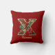 Custom Ornate Monogram X Christmas Red Gold Throw Throw Pillow