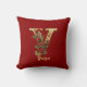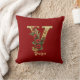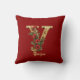 Custom Ornate Monogram Y Christmas Red Gold Throw Throw Pillow
