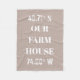 A beautiful way to show how much you love your farm house by customizing this design with your own home coordinates. Search for your coordinates on a mapping site and simply customize the text, latitude and longitude numbers to create your own personalized design. A neutral warm toned brown colour in the background making it ideal for any home decor.