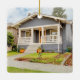 This custom first house Christmas holiday ornament features a photo of your first home and the year on the front, and another photo on the back. This makes a housewarming gift for the new home, or just a special keepsake for you commemorating your new move!
