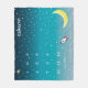 A special personalized baby blanket in an outer space theme in ombre blue teal and white. Modern typography with a space shuttle, flying saucer, stars and moon.
