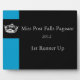 Plague shown with a custom layout for your award title. Customize this item and add your pageant award title,pageant name and add your name. Click the customize button go to the text boxes to the right and change and add text and change colours and fonts.