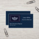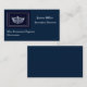 This custom business card template is shown in a navy blue colour with a sample text in white and has a pageant crown print. Customize and change the sample information to yours.