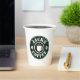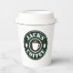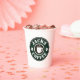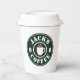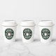 Custom paper coffee cups with lid party supplies. Personalize with your own barista name, company slogan or other text. Custom colours. Great for Birthday, BBQ, party, wedding, office, and more. Double sided print. Disposable party supplies with or without lid. Vintage coffee bean logo with hot cup silhouette. Also great for business owner, shop, store, cafe, bar, event, festival, outdoor market etc. Serve your own unique latte or espresso.