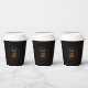 This custom paper cup showcases a sleek black design with a minimalist business logo and customizable text. Perfect for featuring your logo and personalizing with your details, it's ideal for use at your business, in shops, during company events, and more