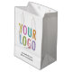Sometimes you only need a few custom printed gift bags, so here is a great way to get just what you need in the colour and design you want. Personalize this gift bag with your own company logo, custom text, and colour. Available in matte or glossy finish. The medium gift bag is 7 inch x 4.5 inch x 10 inch. Made by Digiwrap. No minimum order quantity and no setup fee.
