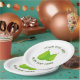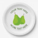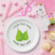 Custom paper party plate with green pear fruit print. Cute party accessories with fruity print. Add your own personalized text. Great for kids Birthday, wedding, dinner party etc. Available in different sizes for serving homemade cake, sweets, pastry food, desserts, fruit pieces and more.