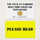Ok so this is more of a gag gift but at the same time how many times have we tried to park and the person next to us parked so horribly that we couldn't park there? Well now you can let them know just how bad they park. On the front it says "You suck at parking. Next time your car gets keyed" with a smiley face "Have a wonderful day!". On the back it is a bright yellow and the words say "Please read". You can change everything but the smiley face. Makes a great gag gift or just a gift for yourself or anyone.