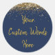 Custom Party Favour His Birthday Navy Blue and Gol Classic Round Sticker