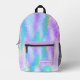 Unique personalized girly backpack with faux iridescent holographic design in pastel colours.