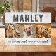 Reflect on the beautiful moments and everlasting bonds built with your beloved pet with our personalized pet memorial plaque. This thoughtfully designed commemoration piece allows you to visually relive three of your favourite memories with your furry friend, elegantly encased and detailed with their name. The heartfelt sentiment 'You left paw prints forever in our hearts' adds a soothing touch of closure and is a special reminder of the undeniable love and joy your pet brought into your life.