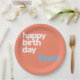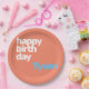 custom peach happy birthday minimal party paper plate