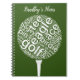 Personalized notebook with golf themed word cloud cover. Create a custom personalised golf inspired gift idea.