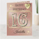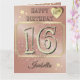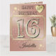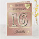 Custom personalised rose gold themed 16th birthday greeting card idea for daughter. Create a unique card for a special birthday.