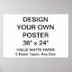Custom printed personalized 36" x 24" HORIZONTAL VALUE MATTE PAPER POSTER Blank Template. Design, create, make your own. Your photo, image, text, logo, graphics in edge-to-edge full colour print. ARCHIVAL PAPER is 55 lb., 10.4 point thick, has a matte finish with a smooth surface, and is recommended for professional photography and graphic art. It is fade-resistant with 95+ years archival rating. Best for high quality, long lasting home and office decor, and for Christmas and birthday gifts.