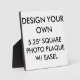 Custom printed personalized 5.25" SQUARE PHOTO PLAQUE Blank Template. Design, create, make your own. A stunningly crisp dye-sublimation print of photo, image, text giving a professional display without a frame. Hardboard panel with attached easel stand, designed for either portrait or landscape display. UV resistant glossy coating protects from scratches and fading for years. Easy wipe-clean surface.