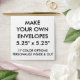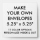 Custom printed personalized 5 ¼” SQUARE ENVELOPE, BASIC MATTE PAPER TYPE & CLEAR BACKGROUND (CUSTOMIZE TO ANY COLOR) Blank Template. Design, create, make your own. Your photo, image, text in full colour edge-to-edge print on every single inch of the envelope, inside and out. Optional Security Tint on inside of envelope. Laser or inkjet printer compatible. SQUARE INVITATION ENVELOPE – 5 ¼” x 5 ¼ ”. Sophisticated square flap and secure gum seal. Fits 5 ¼ x 5 ¼ inch and smaller invitations and cards. PAPER TYPE: BASIC A smooth, vibrant, matte, 80lb text-weight paper that contains 50% recycled content (10% post-consumer and 40% pre-consumer waste). Linen paper type also available. Best for wedding invitations, anniversary party invitations, and for birthday and Christmas greeting cards.