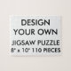 Custom printed personalized SMALL 110 PIECE JIGSAW PUZZLE Blank Template - 8" x 10" (110 pieces). Design, create, make your own. Vivid full colour print of your photo or design. Includes beautiful gift box with puzzle image also printed on the lid. Sturdy cardboard stock, mounted on chipboard, easy wipe-clean surface. Lots of alternative size puzzles available. Best for a kids' or grandparents' birthday or Christmas gifts and for Jigsaw Puzzle fanatics. Warning: Not suitable for children under 3.