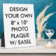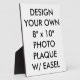 Custom printed personalized 8" x 10" PHOTO PLAQUE Blank Template. Design, create, make your own. A stunningly crisp dye-sublimation print of photo, image, text giving a professional display without a frame. Hardboard panel with attached easel stand, designed for either portrait or landscape display. UV resistant glossy coating protects from scratches and fading for years. Easy wipe-clean surface.