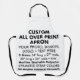 Custom personalized All Over Print Apron, 30" long x 26" wide, is 100% soft and durable machine washable polyester with unlimited apron strap colour options. Big volume discounts for multiple purchase bulk buying available.