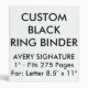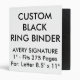 Custom printed personalized SMALL 1" (275 PAGE) - BLACK INSIDE - AVERY One Touch EZD™ RING BINDER (LETTER SIZE) Blank Template - 10" high x 11.75" wide; Spine: 1.4". Designed for 8.5" x 11" letter sized paper. Design, create, make your own. Full bleed photo quality printing on the front, back and spine of folder. Easy open locking rings keep pages secure. Made in U.S.A. Best for company reports, client binders and proposals, for wedding planners and photo albums and, recipe books, for the office, school, kitchen, and for Christmas and birthday gifts.