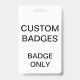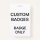 Custom printed personalized 3.38" x 2.13" VERTICAL BADGE Blank Template. Design, create, make your own. Your photo, image, text, logo, graphics in full colour edge-to-edge print on the front and the back, horizontal or vertical. Made of PVC plastic, durable, won't fade or tear. Retractable, Metal Clip, Lanyard Necklace, or Just Badge.