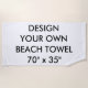 Custom printed personalized BEACH TOWEL Blank Template - 70" x 35". Design, create, make your own. Your photo, image, text in full colour edge-to-edge vibrant sublimation print. Front is a polyester blend, back is 100% cotton, machine washable. Best for vacations summer time, Spring Break,, and birthday and Christmas gifts.