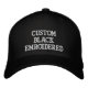 Custom embroidered personalized BLACK BASIC FLEXFIT BASEBALL CAP Blank Template. Design, create, make your own. 3 designable areas - customize embroider your logo, image, text on the front and side design areas of the cap. Comfortable fit high quality baseball cap in two stretchable sizes, featuring a Permacurv® visor, silver underbill, fused hard buckram 8.89 cm crown, 6 sewn eyelets for breathability and taped seams. Caps available in 12 colour options. Best for small business marketing, promotional, advertising and staff use, for men, women and kids, and for birthday and Christmas gifts.