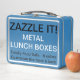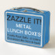 Custom printed personalized PALE LIGHT BLUE METAL LUNCH BOX Blank Template - 6.75” high x 8.625” wide x 3.75” deep, Weight: 12 oz. Design, create, make your own. Your photo, image, text, logo, graphics in full colour print on one side or on both sides of the lunchbox. Food contact safe interior material, durable - CPSIA complaint - tin plate, with collapsible black plastic handle. Choose from 6 base colours: White, Stainless, Black, Dark Blue, Light Blue & Red.