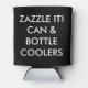 Custom printed personalized CAN COOLER Blank Template with EXAMPLE OF BLACK BACKGROUND PRINT (change to any colour or clear) - 3"diameter, 3.75" high. Design, create, make your own. Your photo, image, text, logo, graphics in full colour edge-to-edge print on the entire area (all sides and bottom) of the foam cooler can cover. Fits any standard 12 oz. cans. Collapsible high density open cell polyurethane foam for easy storage. Made in the USA. Great volume discounts