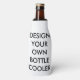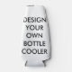 Custom printed personalized BOTTLE COOLER Blank Template - 3"diameter, 7" high. Design, create, make your own. Your photo, image, text, logo, graphics in full colour edge-to-edge print on the entire area (all sides and bottom) of the foam cooler can cover. Fits any standard 12 oz. bottles. Collapsible high density open cell polyurethane foam for easy storage. Made in the USA. Great volume bulk multi purchase discounts.